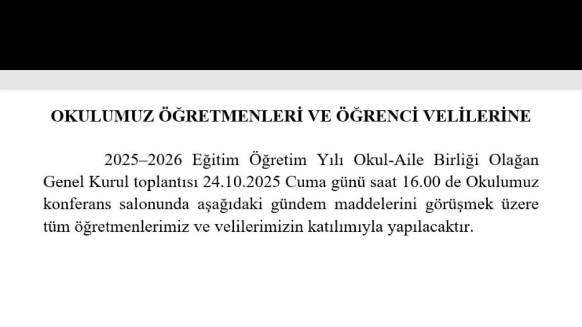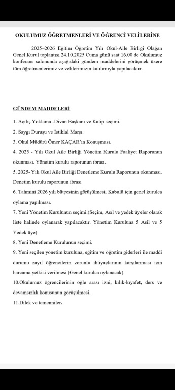 2025-2026 Eğitim-Öğretim Yılı Okul Aile Birliği Olağan Genel Kurul Toplantısı